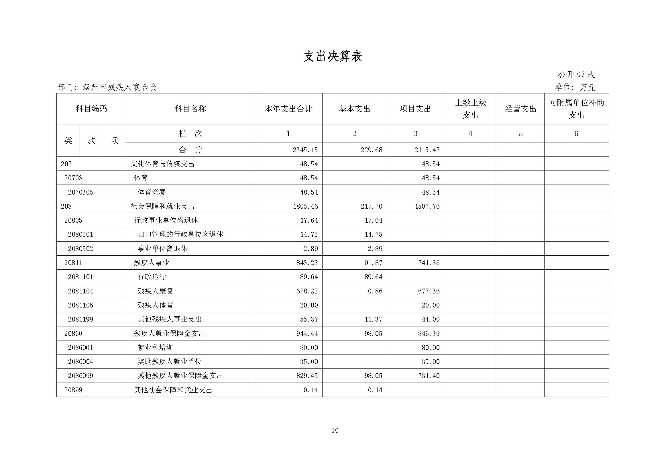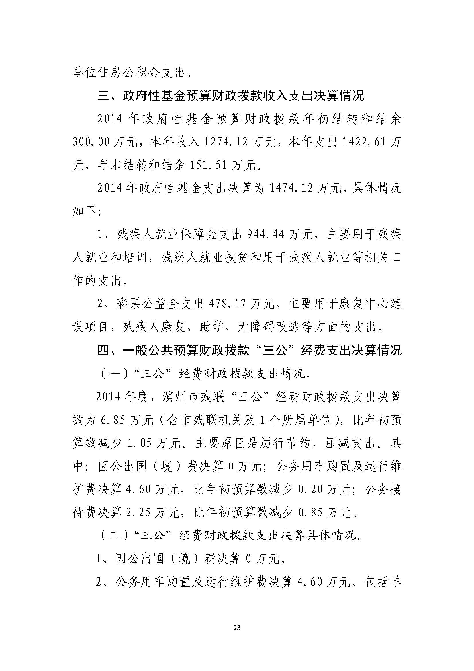 2014年度滨州市残联部门决算